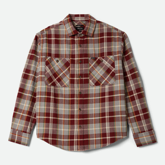 Brixton Vintage Wash Maroon Red Beige Green L/s Flannel Shirt - L is backordered and will ship as soon as it is back in stock.
