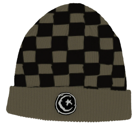 Foundation Star & Moon Olive Checkered Beanie