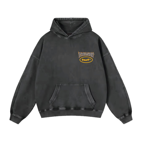 Huf X Thrasher Meltdown Heavyweight Washed Black Hooded Sweatshirt