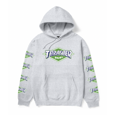 Huf X Thrasher Logo Heather Grey Hooded Sweatshirt