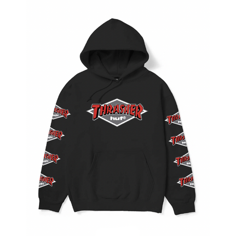 Huf X Thrasher Logo Black Hooded Sweatshirt