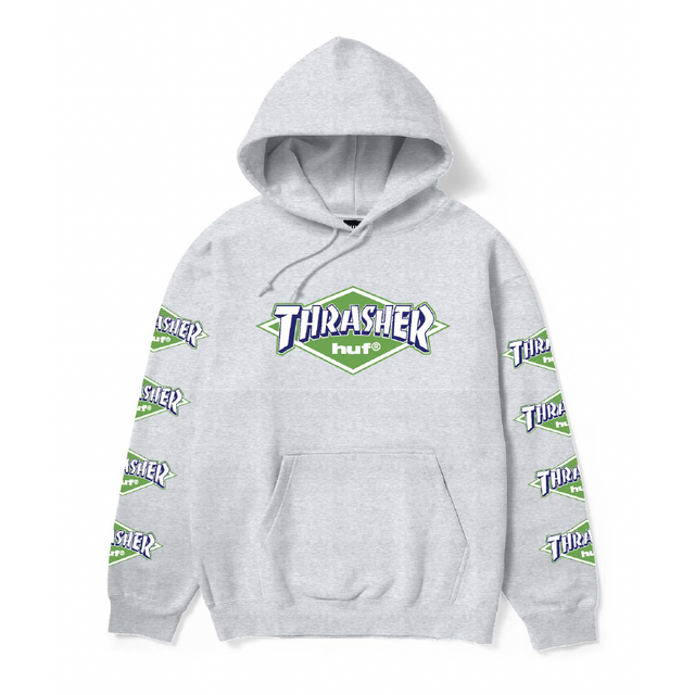 Huf X Thrasher Logo Heather Grey Hooded Sweatshirt - M is backordered and will ship as soon as it is back in stock.