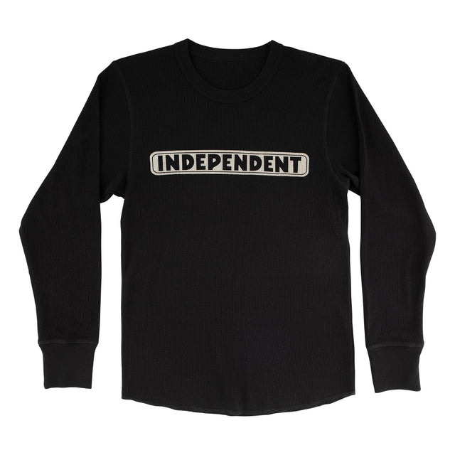 Ride the best and rep the best with the latest apparel and accessories from Independent Trucks. The Independent Bar Logo custom long-sleeve crew neck thermal top features soft hand Independent Bar Logo chest screenprint. Independent Trucks - Built to Grind.