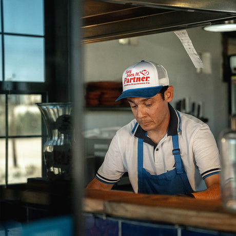 Sendero Easy Does It White Red Blue Foam Mesh Trucker Snapback Hat