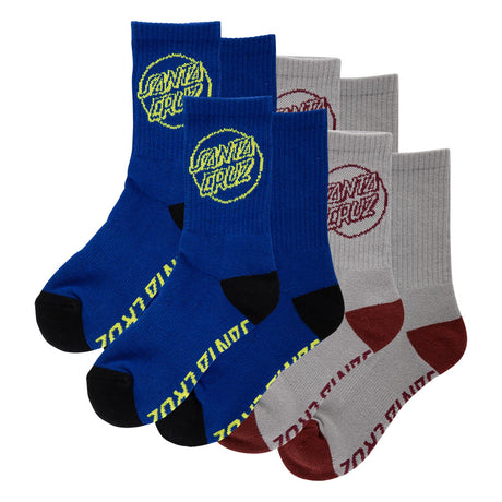 Santa Cruz Opus Strip Crew 4 Pack Grey/Royal 2-5.5 Youth Socks