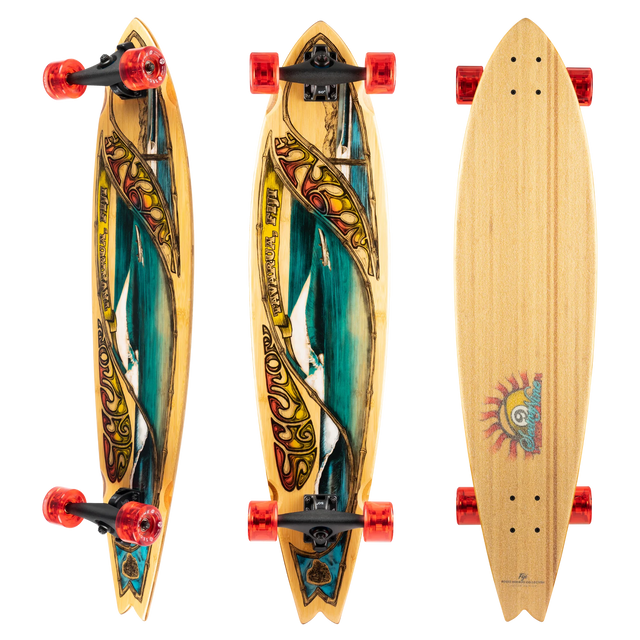 The Roots Bamboo Collection is a limited-edition Re-Issue including graphics depicting world class surf breaks with highly detailed artwork. This long-standing series of boards channels some of the original inspirations for Sector 9 both in performance and in style. Built for the speed and power needed to excel in a location like Tavarua, this extended swallow tale gives you the ability to press the gas and go. Whether you’re weaving through barneys or making a clean line down some open pavement the Fiji is your weapon of choice.